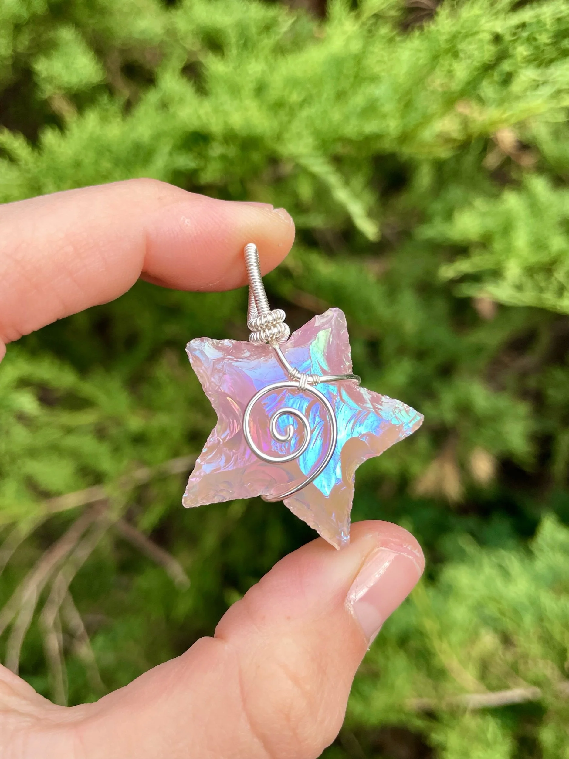 This Opalite star has been lovingly wrapped in silver plated wire.